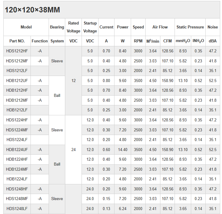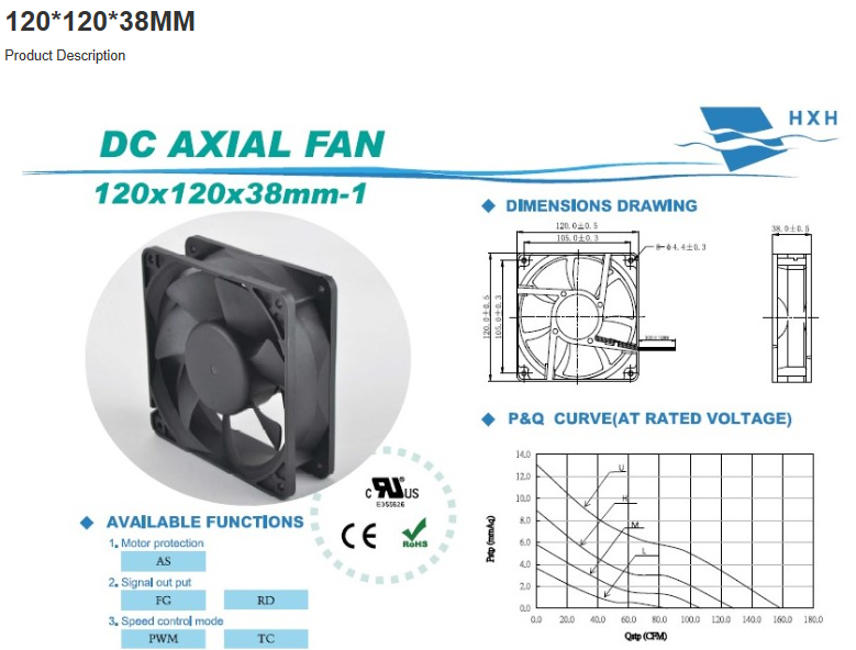 Specifications 120*120*38MM 1.size(mm):120X120X38 2.rated voltage: 12V ,24V,48V