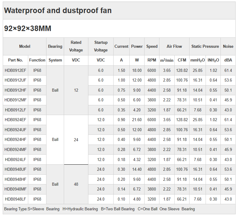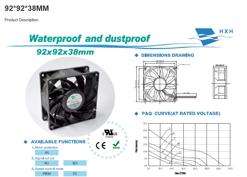 Specifications 92*92*38MM 1.size(mm):92X92X38 2.rated voltage: 12V 24V 48V
