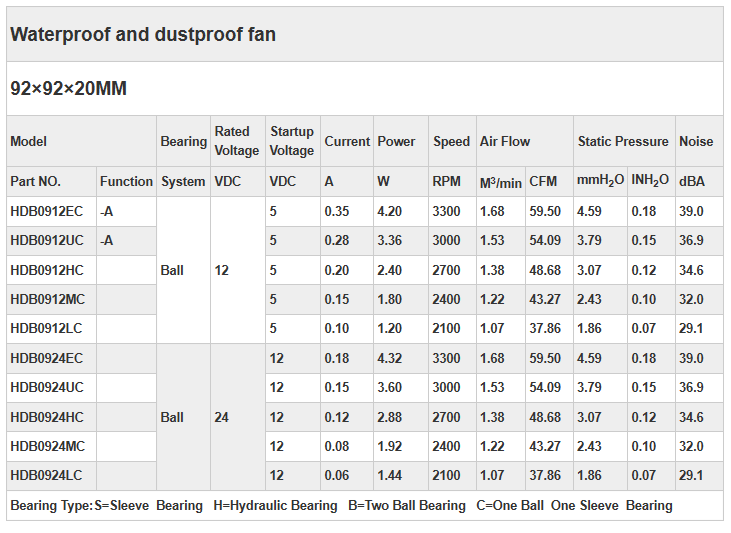 Specifications 92*92*20MM 1.size(mm):92X92X20 2.rated voltage: 5V 12V 24V 48V