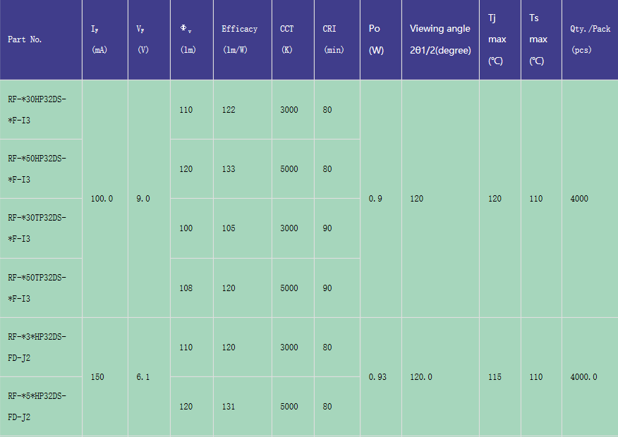5. Lead-free package, RoHS compliant, LM-80 certified.