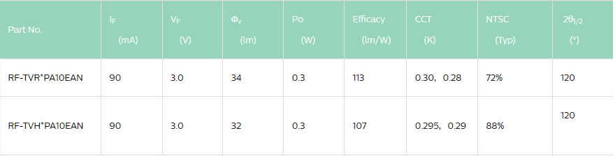 3. High light efficiency, high brightness, high current drive