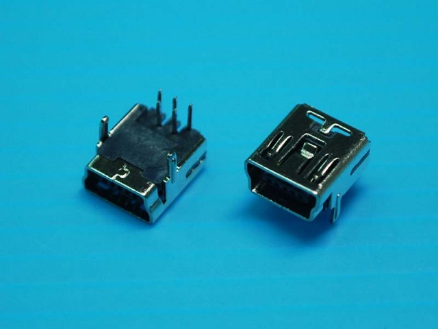 USB2.0 Mini B Type 5Pins Receptacle Right Angle DIP Type With DIP Shielding Gold Flash Plating Black Color