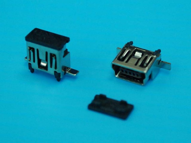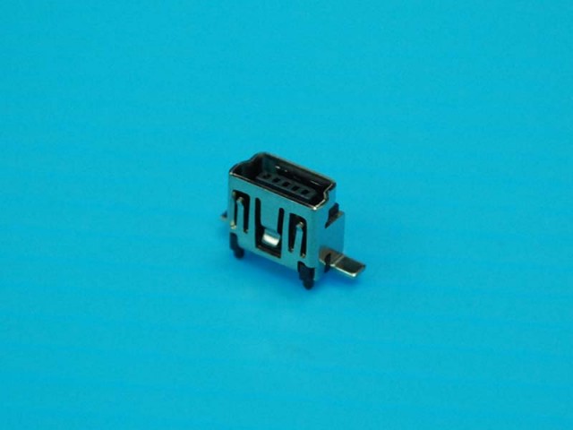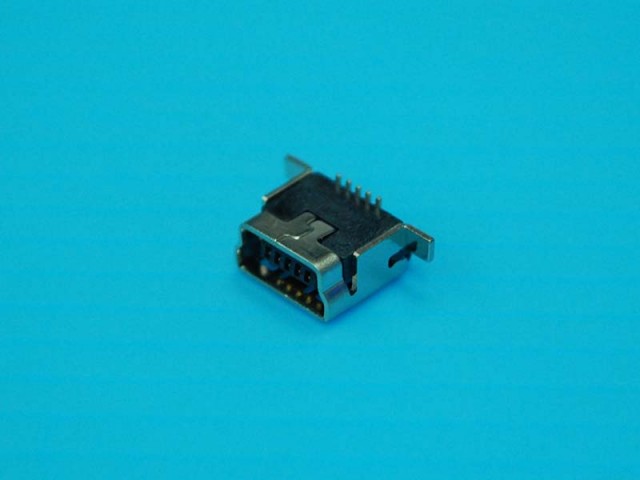 USB2.0 Mini B Type 5Pins Receptacle Vertical Type H=6.50mm Height SMT Type without Post Black Color 10u” Gold Plating