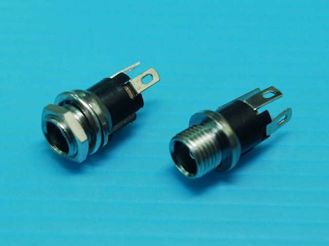 DC Power Jack 2.00mm 2.34mm or 2.5mm Center Pin/5.70mm Vertical DIP Type with Holes Screw L=5.7mm M8xP0.75mm Washer Thickness 0.5mm Tin Plating H=10.0mm Height Black Color