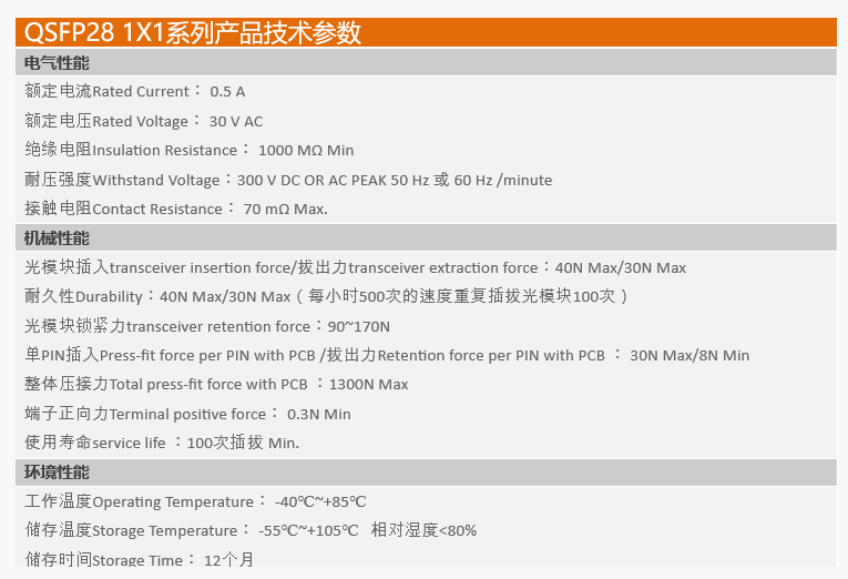 QSFP28 1X1connector 30U A TYPE with CZT