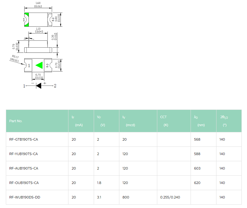 Dimension(L*W*H): 1.6*0.8*0.7mm Features: - Cost-effective - Low light failure - High reliability Applications: - Projector - Router - Mobile power