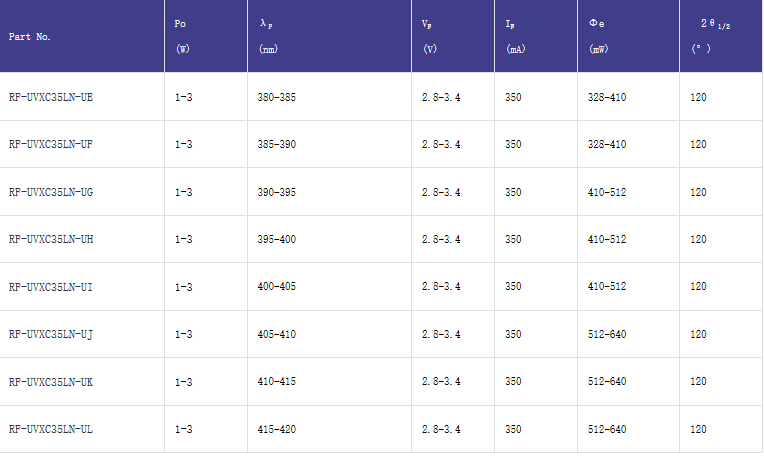 - Low spectral range, high light uniformity